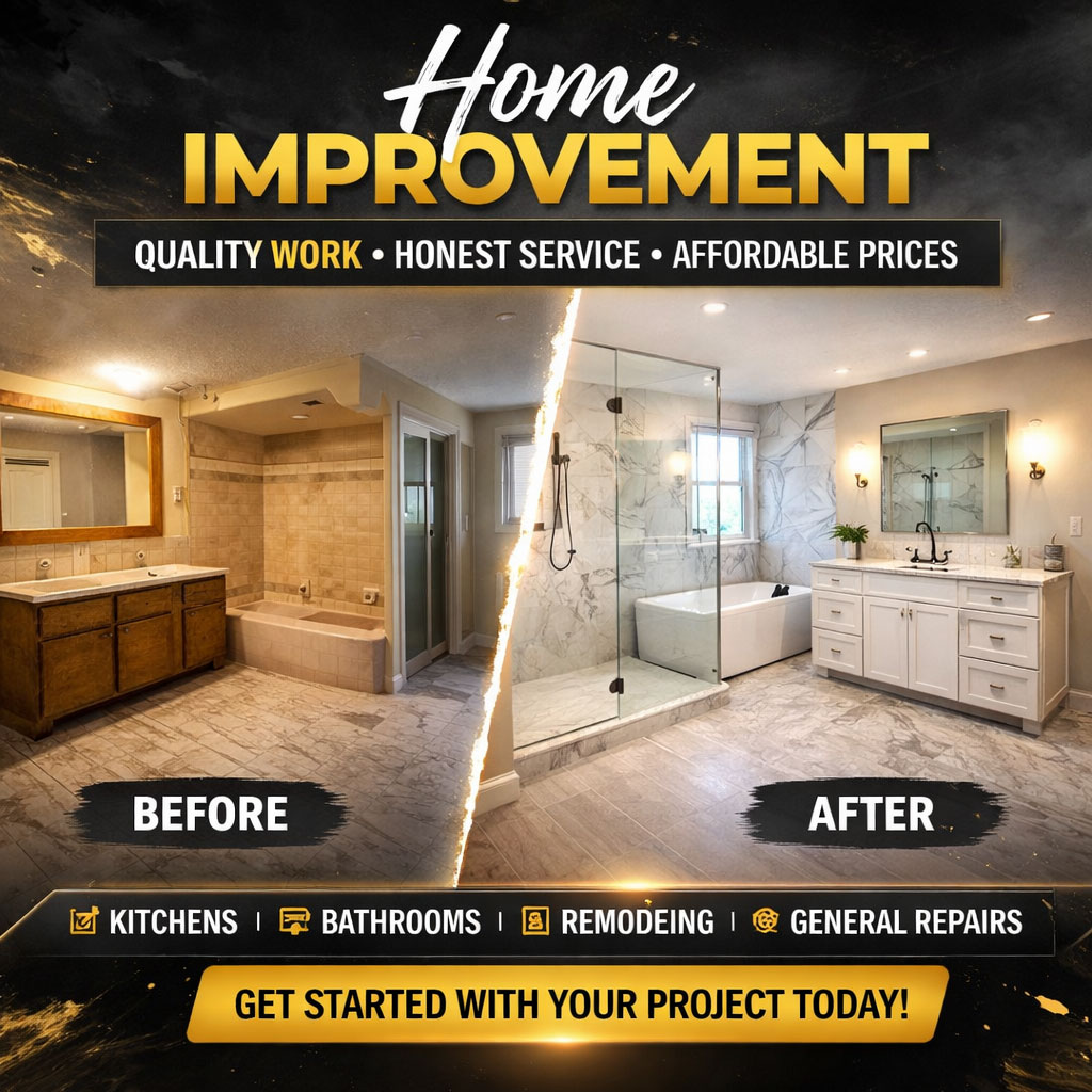 From home improvements and renovations to roofing, framing, drywall, and kitchen or bathroom remodels—we handle it all!